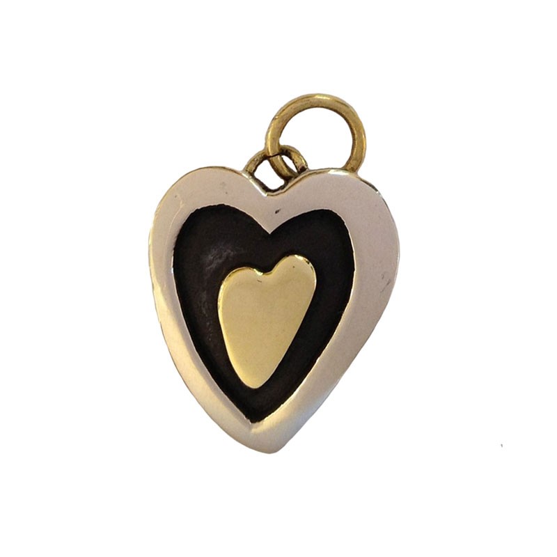 A unique and striking heart-shaped pendant with contrasting colours. Made from nickel and brass. Matching earrings available. A fair trade product handmade in Mexico.